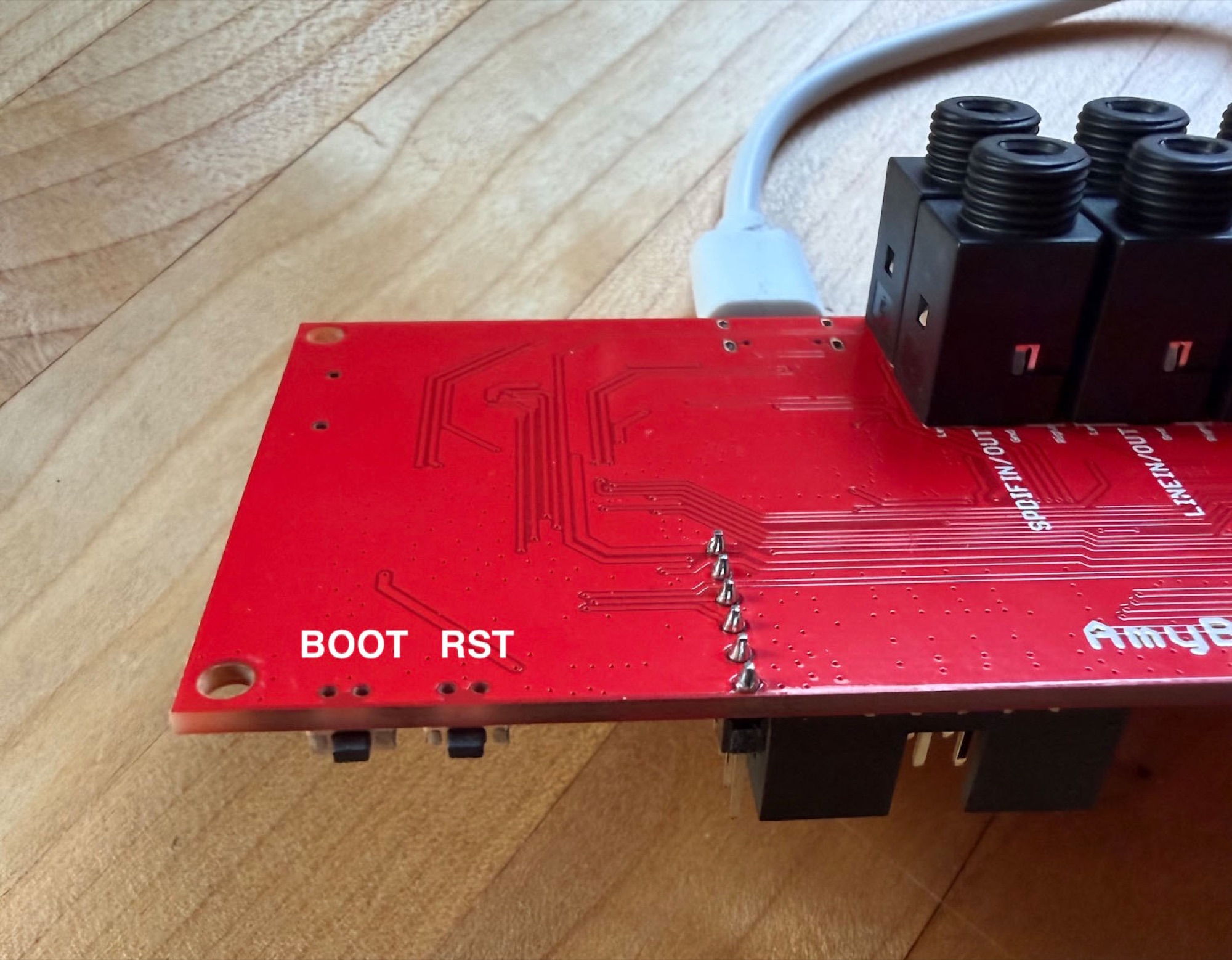 - Wait a minute until the progress bar disappears. Hit RST. Your AMYboard should be updated!